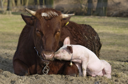 Schau einer lebendigen Kuh einmal in die Augen. Du wirst die Seele erkennen. Auch einem Tier kann das Herz brechen, wenn es ansehen muss, wie seine Artgenossen verladen werden oder das eigene Kind weggenommen wird. Wenn du also keine Babys essen willst, deren Mütter an gebrochenem Herzen leiden, dann lass die Finger von Kalb-, Ferkel- und Lammfleisch. Da ich selbst auf dem Land lebe, erlebe ich das Ausmaß des Tierelends oftmals sehr direkt. Ein benachbarter Bauer hat eine Schweinemast. 380 Schweine leben in einem Stall von ca. 15 Metern Länge und 10 Metern Breite. Sie werden ein halbes Jahr lang im Dunkeln gehalten und gemästet, um dann in Nacht-und-Nebel-Aktionen verkarrt zu werden. Wenn der Stall ausgemistet wird, stinkt es kilometerweit. Und das geschieht einem als äußerst reinlich und intelligent bekanntem Tier. Wenn der Stall aus Versehen einmal offen bleibt, dann tun sich oft 5 bis 8 arme Schweine zusammen und ergreifen die Flucht. Ist natürlich zwecklos, weil irgendein Nachbar ihnen begegnet und den Bauern alarmiert. Mittlerweile sollte es uns klar sein, dass Alternativen gefunden werden müssen. Die Tiere müssen beginnen, sich zu verteidigen. Zuerst die Würmer in den Fischen, dann die Schafe, die Rinder und nun die Vögel. Schweine und Hühner sind angeblich immun, abgesehen von Salmonellen, die uns ja auch das Leben kosten können. Eine Zeitlang berichteten die Medien von der neuen Rinderseuche, die jedoch angeblich nicht auf den Menschen übertragen werden kann. Welche Ignoranz steht hinter dieser Behauptung? Wir benutzen Tiere zu Versuchen, erzeugen künstlich menschliche Zivilisations-Krankheiten im Tier, um dann unsere pharmazeutischen Mittelchen oder noch schlimmer - Kosmetika - an ihnen zu erproben. Die Wirksamkeit im Tier wird automatisch für den Menschen anerkannt; schlägt dann aber doch bei Menschen immer wieder fehl - Bestes Beispiel Contergan -. Doch dass wir dann umgekehrt auch den gleichen Krankheiten wie die Tiere anheim fallen können, soll keinerlei Gültigkeit haben? Welch ein Hohn. Wozu sind dann diese brutalen Tierversuche gut? Warnende Stimmen aus den Kreisen ethischer und verantwortungsvoller Wissenschaftler, die es zum Glück ebenfalls gibt, werden belächelt und ignoriert. Was muss eigentlich noch alles geschehen, bevor den geldgierigen Industriellen und den Politikern endlich die Augen geöffnet werden? Wir sollten die Anfänge erkennen, bevor wir von der notwendigen Verteidigung des Planeten Erde überrannt werden. Jeder Einzelne, der dem Fleischkonsum entsagt oder ihn zumindest einschränkt, - es gibt mittlerweile genügend triftige Gründe und sei es nur die Angst um dein Leben -, hilft, das Elend der Tierwelt und der dritten Welt zu vermindern. Wir bitten dich, der oder die du bis hierher gelesen hast, deinen Teil dazu beizutragen. Zu deinem eigenen Wohle, dem des Tierreiches und des Planeten Erde. Eine Einschränkung könnte dahingehend vollzogen werden, indem du das Elend nicht weiter unterstützt und nur noch Biofleisch isst, wenn du Fleisch benötigst. Biologisch gehaltene Tiere werden artgerecht gehalten und möglichst stressfrei, oft auf dem eigenen Hof, geschlachtet. (Stand: 1988. Bis heute hat sich vieles verschlechtert. sh. Newsletter). Wie kann das in der Praxis aussehen? Völlig falsch wäre es jetzt, ab sofort nur noch Obst und Gemüse zu essen, wenn dein Körper sich dagegen wehrt. Dein Körper ist in vielen Inkarnationen und ganz besonders in der Jetzigen an die Zufuhr von tierischem Eiweiß in Form von Fleisch gewöhnt. Der Körper, der in der Materie beheimatet ist, muss sich immer langsam auf eine Entwöhnung umstellen, wenn er keinen Schaden nehmen soll. Also solltest du auch langsam beginnen. Dies gilt besonders dann, wenn du dich schwer tust, vom Fleischverzehr Abstand zu nehmen. Ganz egal, was über Schweinefleisch gesagt wurde, du solltest auf jeden Fall, schon in deinem eigenen Interesse, auf rotes Fleisch verzichten. Das heißt, auf Rind-, Gans- und Schaffleisch. Ein Buddhist würde niemals Rindfleisch essen. Es ist ein Tier, das dem Menschen dient und hilft. Es schenkt Milch, hilft mit seiner Arbeit auf dem Feld, seinem Fell usw. Dann kannst du deinen Fleischkonsum drosseln, indem du, wenn du bisher täglich Fleisch zu dir genommen hast, reduzierst auf zum Beispiel jeden zweiten Tag fleischlos zu leben. Oder indem du einfach ein Stückchen weniger isst, wenn du es täglich brauchst. Du kannst es von Monat zu Monat reduzieren. Wohlgemerkt: Es wäre zwar sehr schön, doch es ist nicht notwendig, dass du Vegetarier wirst, wenn du es absolut nicht willst. Wichtig jedoch ist, dass du dich von der Massentierhaltung und Massenschlachtung distanzierst vor allem dann, wenn du dich für spirituell hältst. Konsum eines gequälten Lebens kann niemals mit Spiritualität im Einklang stehen.