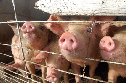 Die Tiere in den Schlachthöfen erleben die gleiche panische Todesangst, die ein Mensch an seiner Stelle erleben würde. Das Fatale an der Situation ist, es produziert auch die gleichen Stress- und Angsthormone, die ein Mensch in ähnlicher Situation produzieren würde. Diese Hormone verteilen sich in rasender Schnelligkeit im gesamten Gewebe, vermischen sich mit anderen Stressfaktoren, die ausgeschüttet werden. Sie landen als Chemiecocktail, getarnt als „ein Stück Lebenskraft“, auf den Tellern der Menschen, die dieses Elend fördern und konsumieren. Das bedeutet: Wir essen die Angst, den Stress, den qualvollen Tod des Tieres gleichzeitig mit dem Schnitzel. Ebenso wie sämtliche dem Tier verabreichten Medikamente und Hormongaben; und das Wichtigste - die Todesangst, die Todesbotschaft - wird mitgegessen und in den eigenen Zellen integriert. Das alles befindet sich in dem Stück Fleisch aus quälerischer Massentierhaltung auf den Tellern der meisten Menschen. Natürlich ist es dir nicht bewusst, während du dein Mahl genießt. Was muss aber in einem Tier gefühls- und instinktmäßig vorgehen, wenn es mit Schlägen, Stromstößen und Tritten in Massen in einen LKW getrieben wird. Dann wird es durch den Großstadtverkehr oder tagelang per Bahn, oftmals ohne Wasser und Futter, zum Schlachthof gekarrt und wieder mit Stockschlägen zur Tötungsmaschine getrieben, die sehr oft - durch Bedienungsfehler und Eile - nicht gleich tötet, sondern nur leicht betäubt. Es wird also noch lebend auseinander geschnitten. Der Mörder in unserem Auftrag - der Schlachter - hat es eilig und das „Vieh“ wird sowieso gleich in kochendes Wasser gehängt. Damit wird ihm der Rest gegeben. Das ist die wortwörtliche Aussage eines Schlachters aus einem Schlachthof. Ein Tier hat ein sehr viel feineres und direkteres Empfinden als der Mensch. Es weiß vom ersten Augenblick an, was es erwartet, doch während der Stunden, in denen es auf seinen Tod wartet, ist ihm nicht bewusst, das diese Zeit vorüber geht. Es lebt direkt ohne Zeitgefühl, im ewigen Jetzt, in ständiger Angst mit einhergehender Hormonausschüttung und wittert nichts als Tod und Schmerz. Wenn du ein wenig sensibel bist, dann gehe nur einmal in die Nähe eines Schlachthofes in der nächst größeren Stadt. Die Schwingung in weiter Umgebung ist unerträglich, trostlos und bedrückend. Die gequälten Tiere, die auf den Zuchthöfen verbleiben, wittern die Todesangst ihrer Vorgänger. Die anderen Tiere, welche dieses Mal verschont wurden, doch ihren Artgenossen zuschauen mussten, wissen sehr genau, dass es eine Fahrt ohne Rückkehr ist. Im Grunde genommen tun wir mit Tieren nichts anderes, als das, was unter dem Hitler-Regime in den KZ’s geschah, nur dauerhafter. Auch wenn jetzt jemand über diesen Vergleich protestieren möchte, gibt es nur eine Tatsache: Ein Tier ist ebenso ein göttlicher Funke mit Empfindungen und Gefühlen, wie jeder Mensch es für sich ganz selbstverständlich beansprucht. Das Elend im Tierreich, verursacht durch seinen großen Bruder und Beschützer – den Menschen -, scheint jedoch kein Ende nehmen zu wollen. Einem Bericht zufolge werden täglich allein in Deutschland 20.000 Schweine geschlachtet. (Stand 2005)